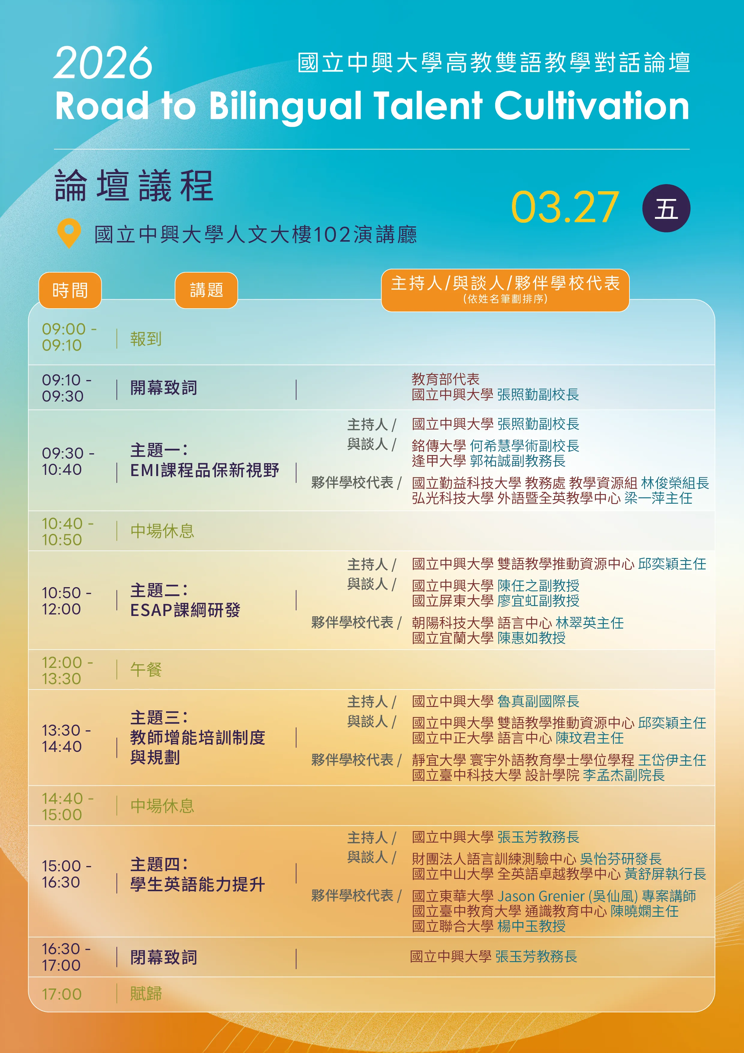 並辦理「2026 國立中興大學高教雙語教學對話論壇: Road to Bilingual Talent Cultivation」,